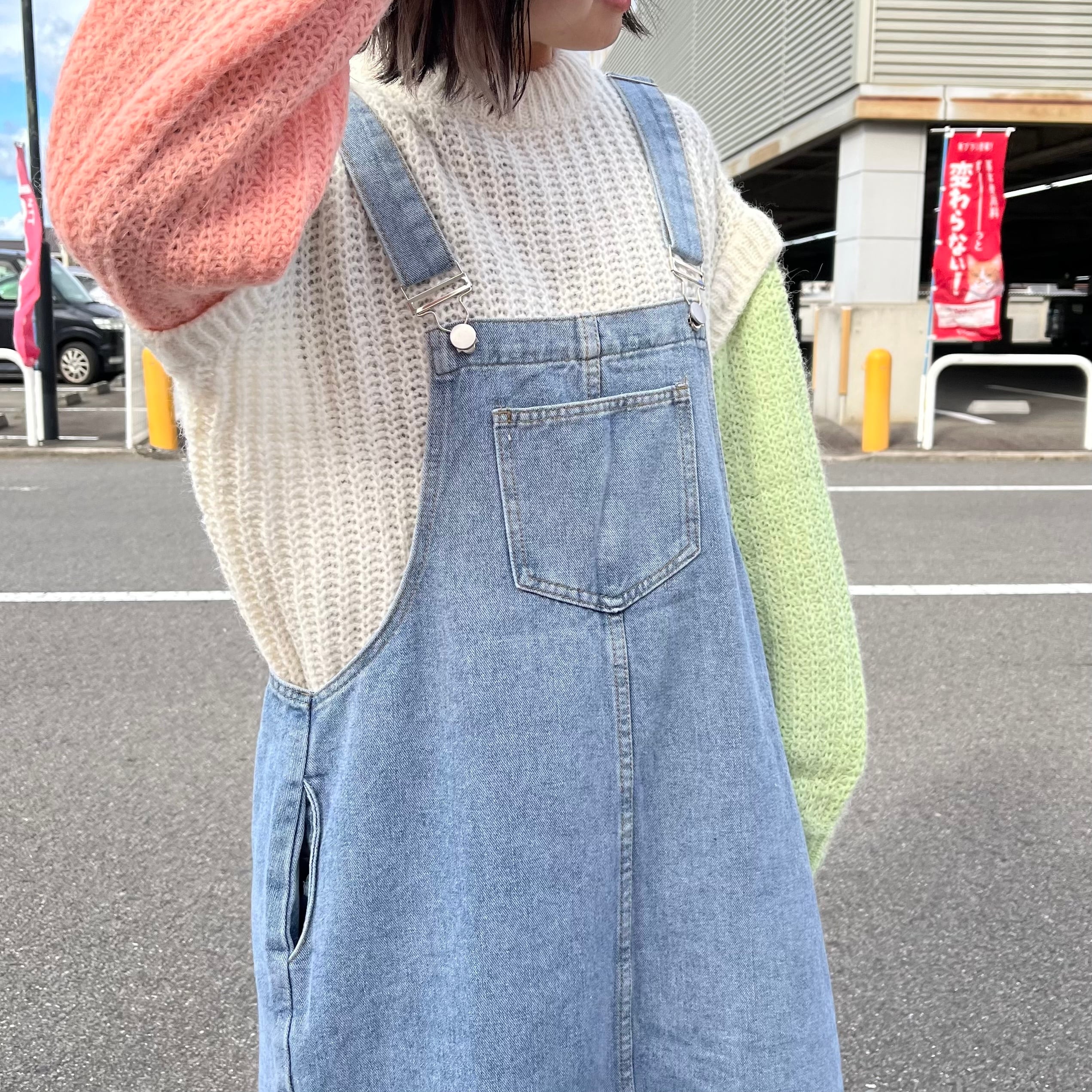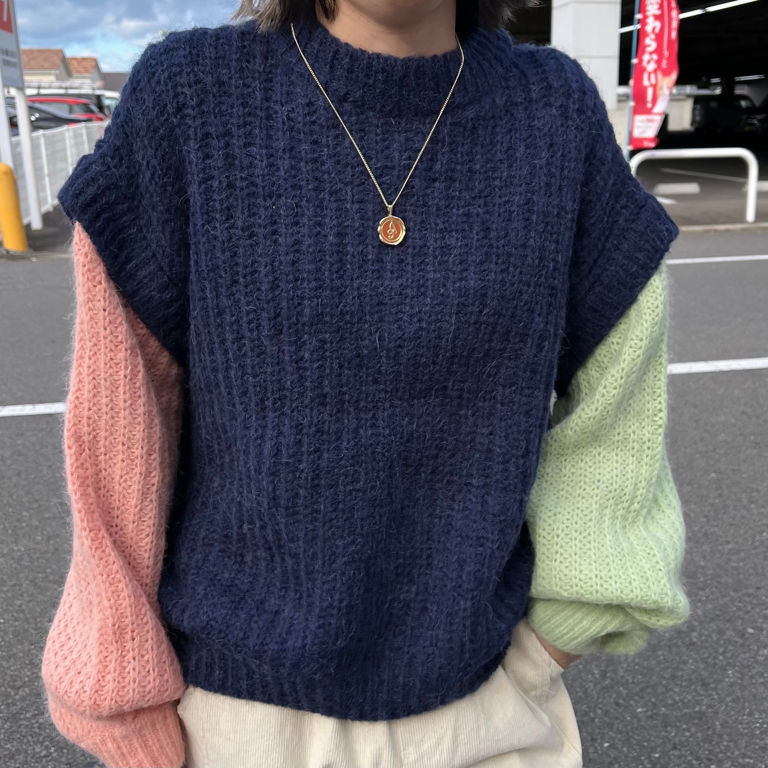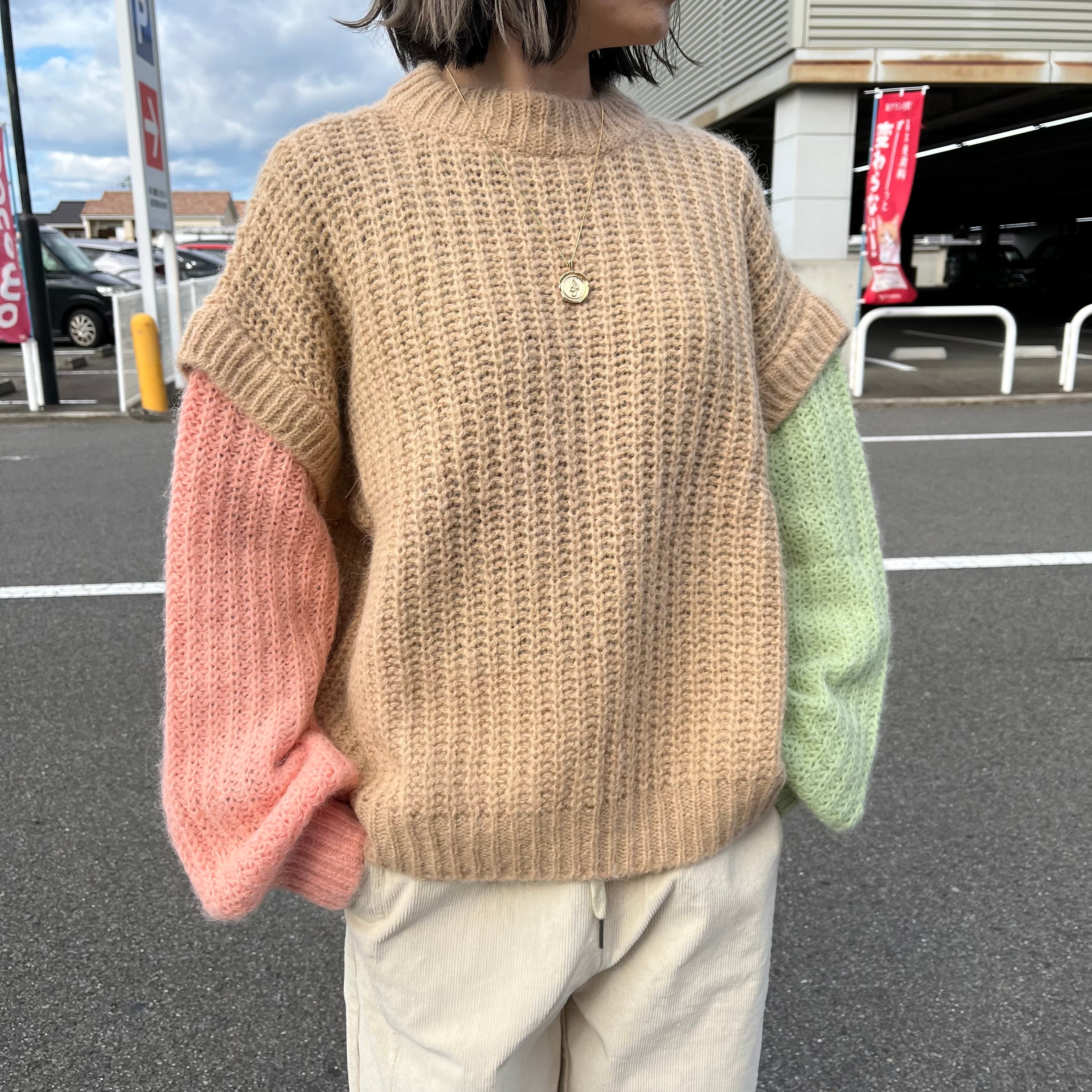 モヘアニット 袖 切り替え カラフル