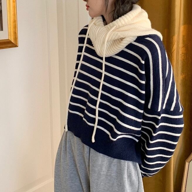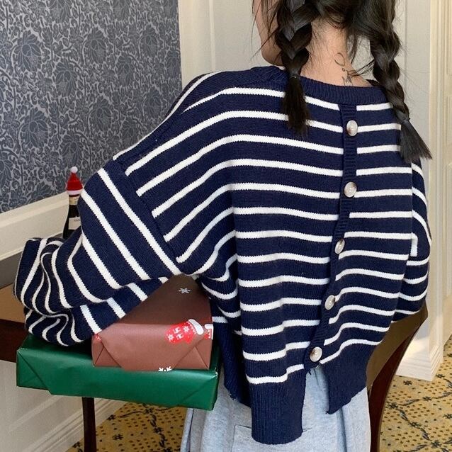 【完売】バックボタンニット ショート丈ニット ボーダーニット