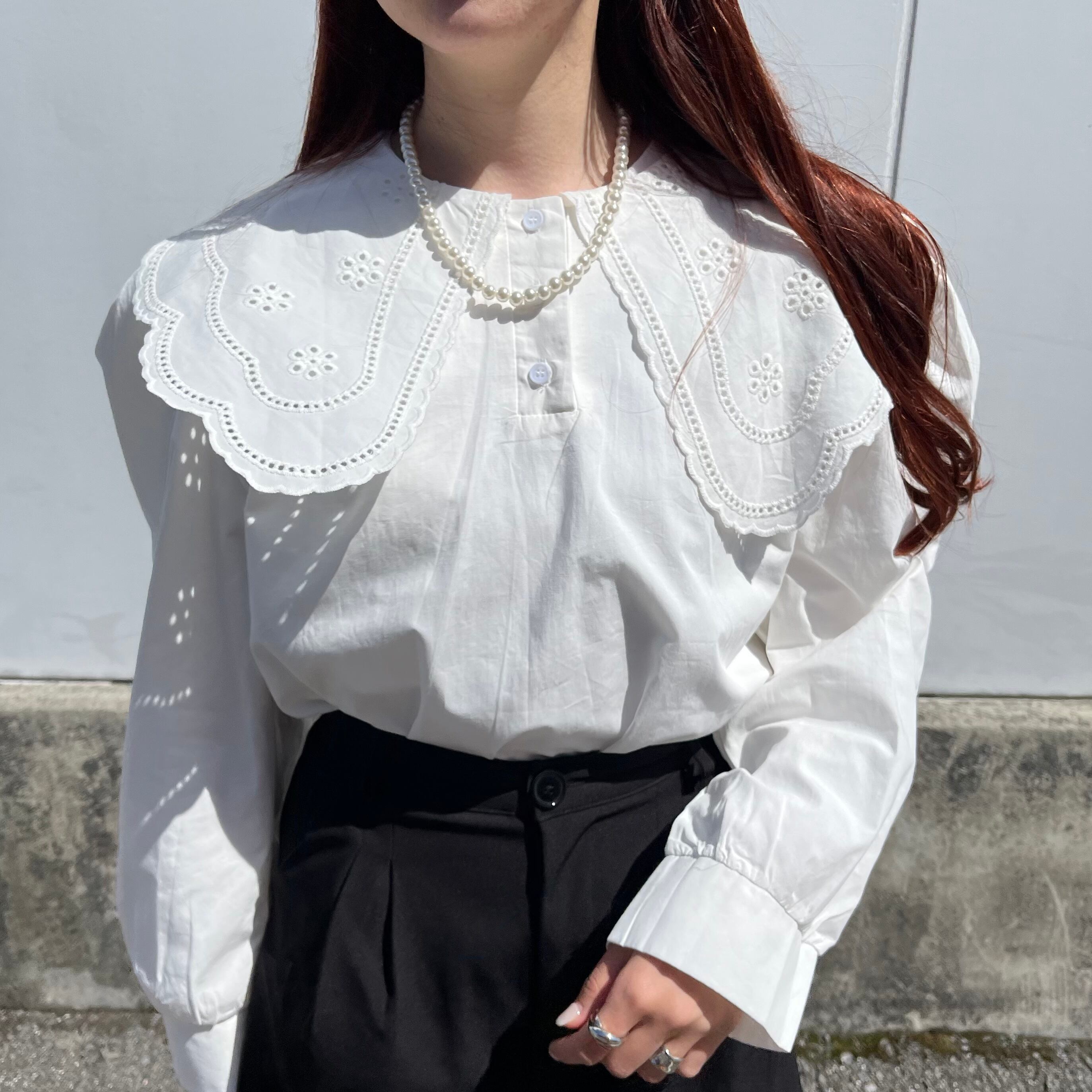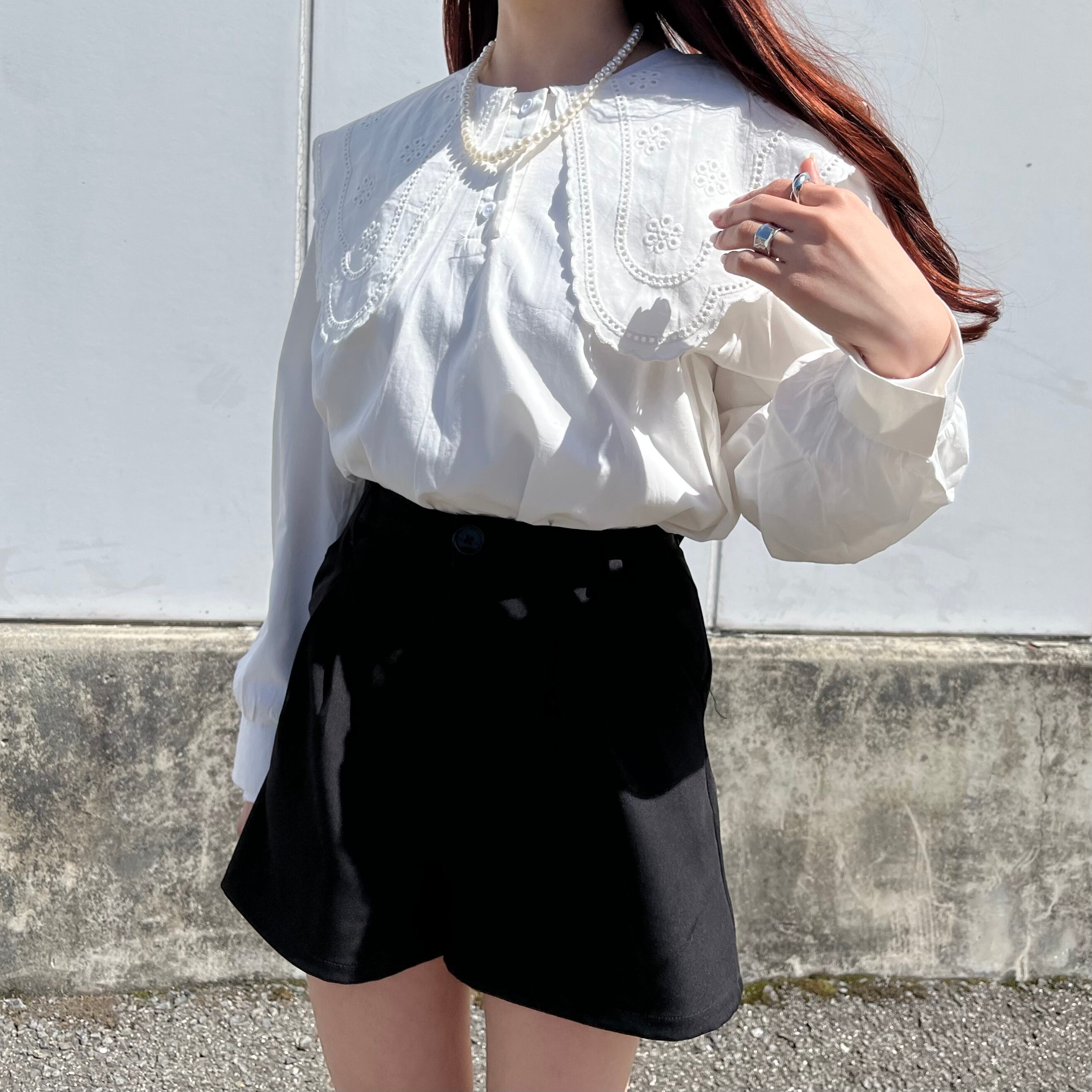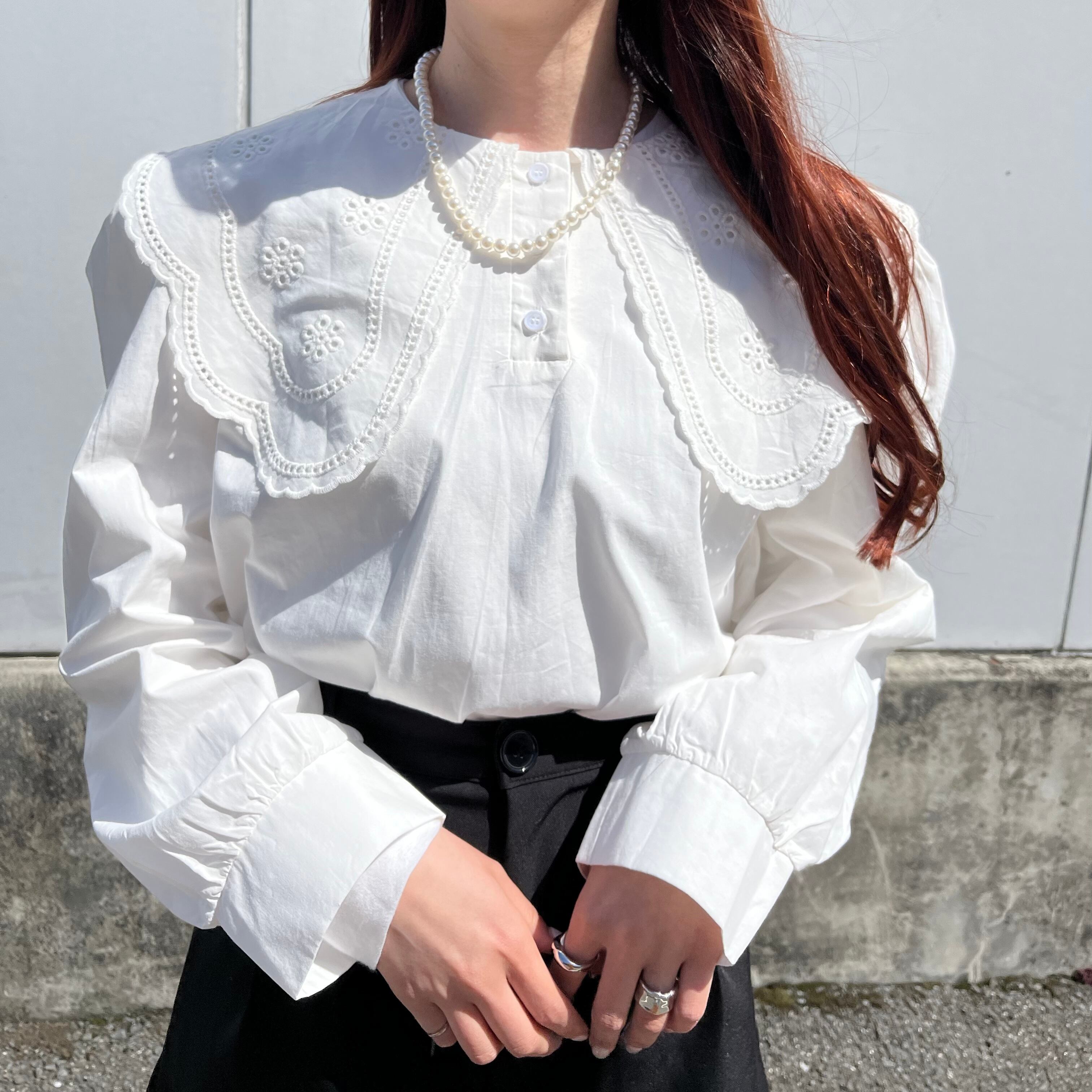 ビッグ襟ブラウス ガーリー パフスリーブ