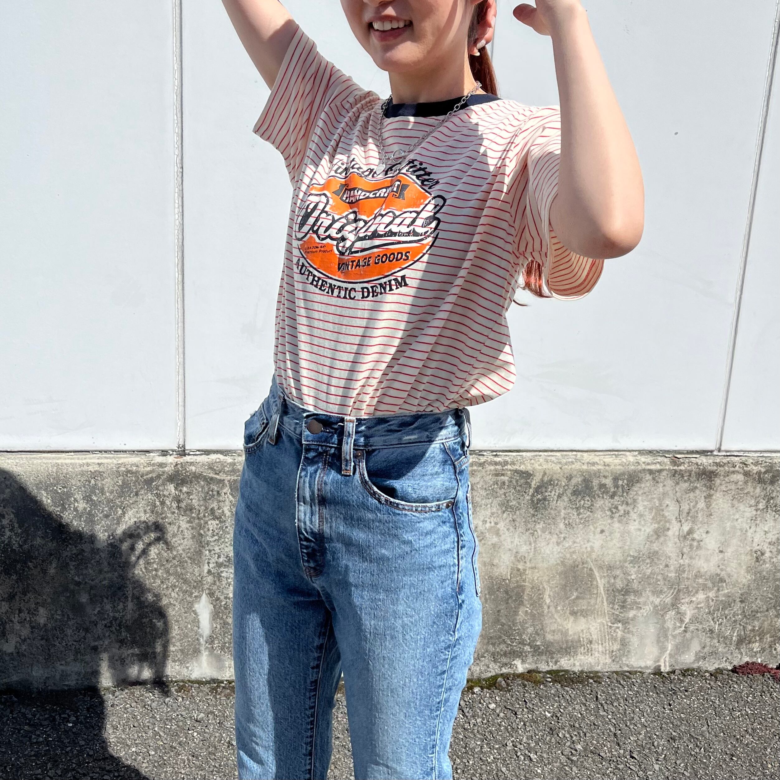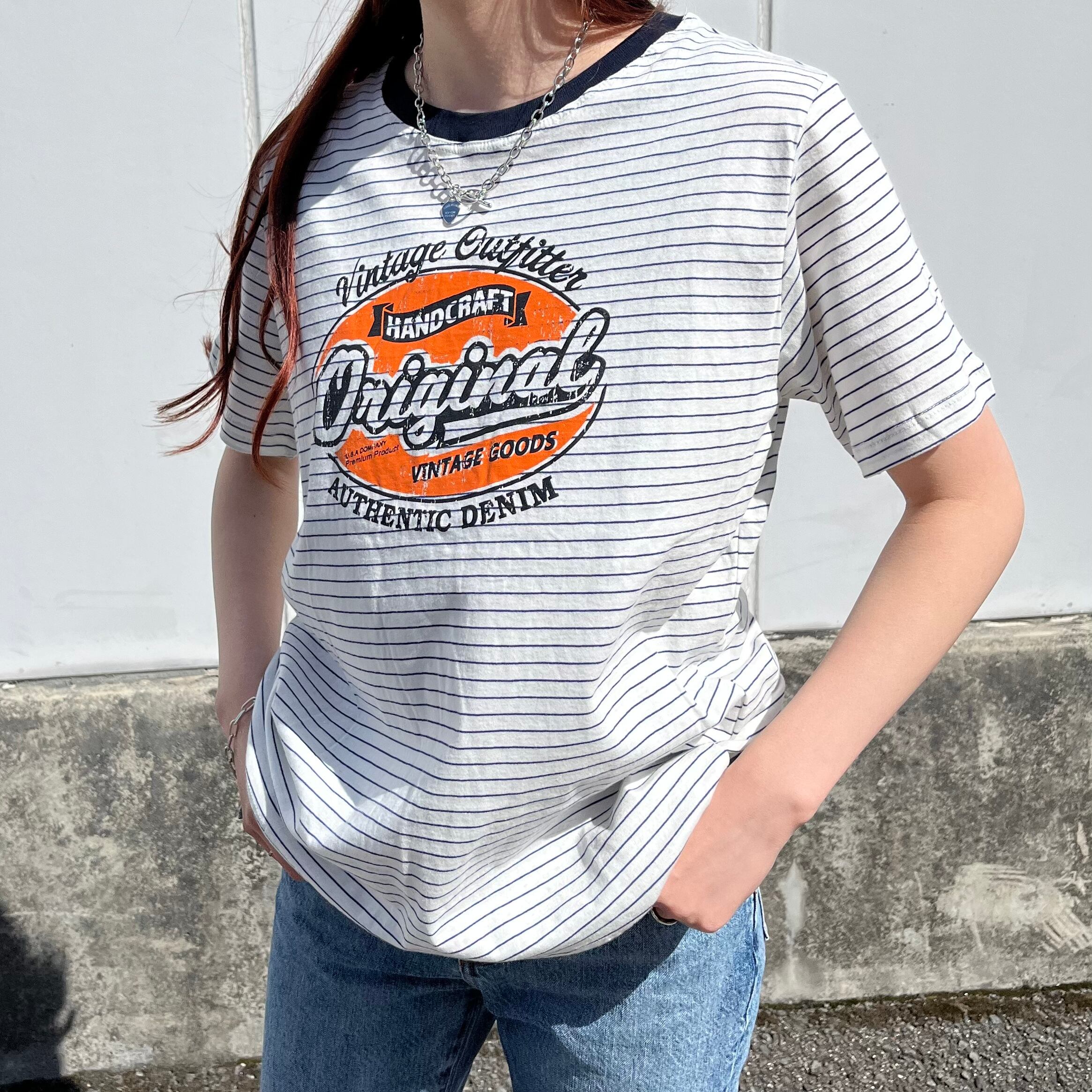 【完売】ボーダーフロントプリントTシャツ ヴィンテージプリント