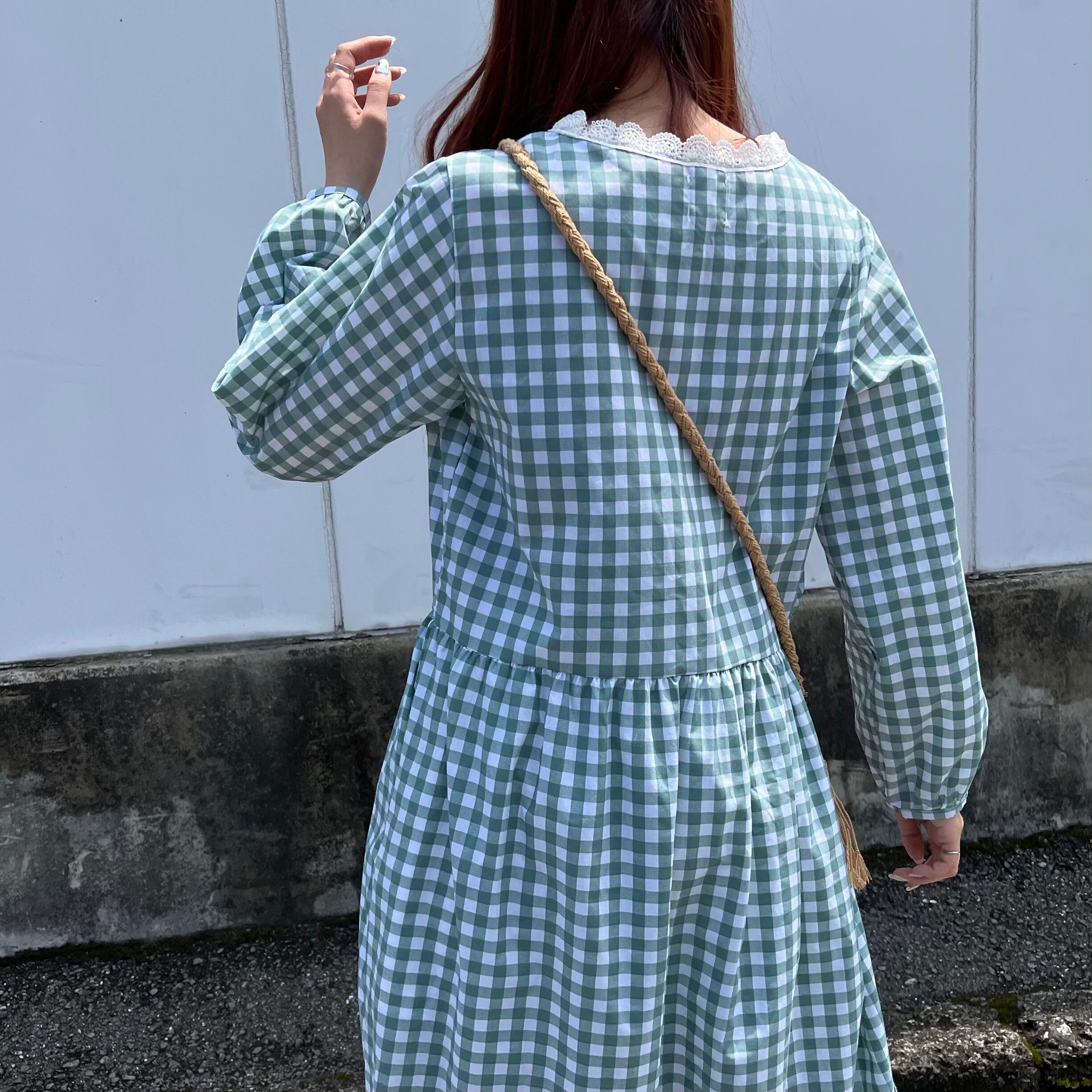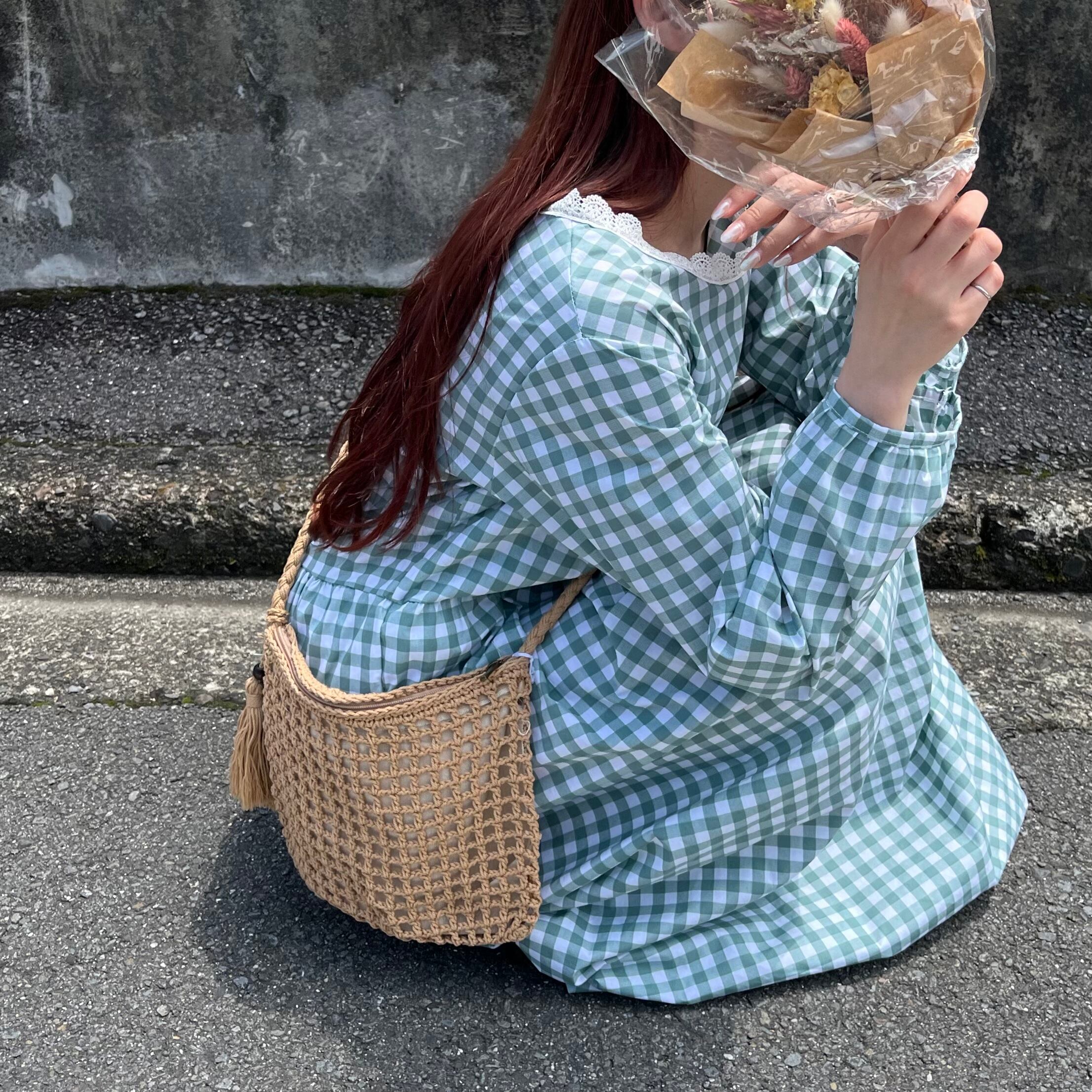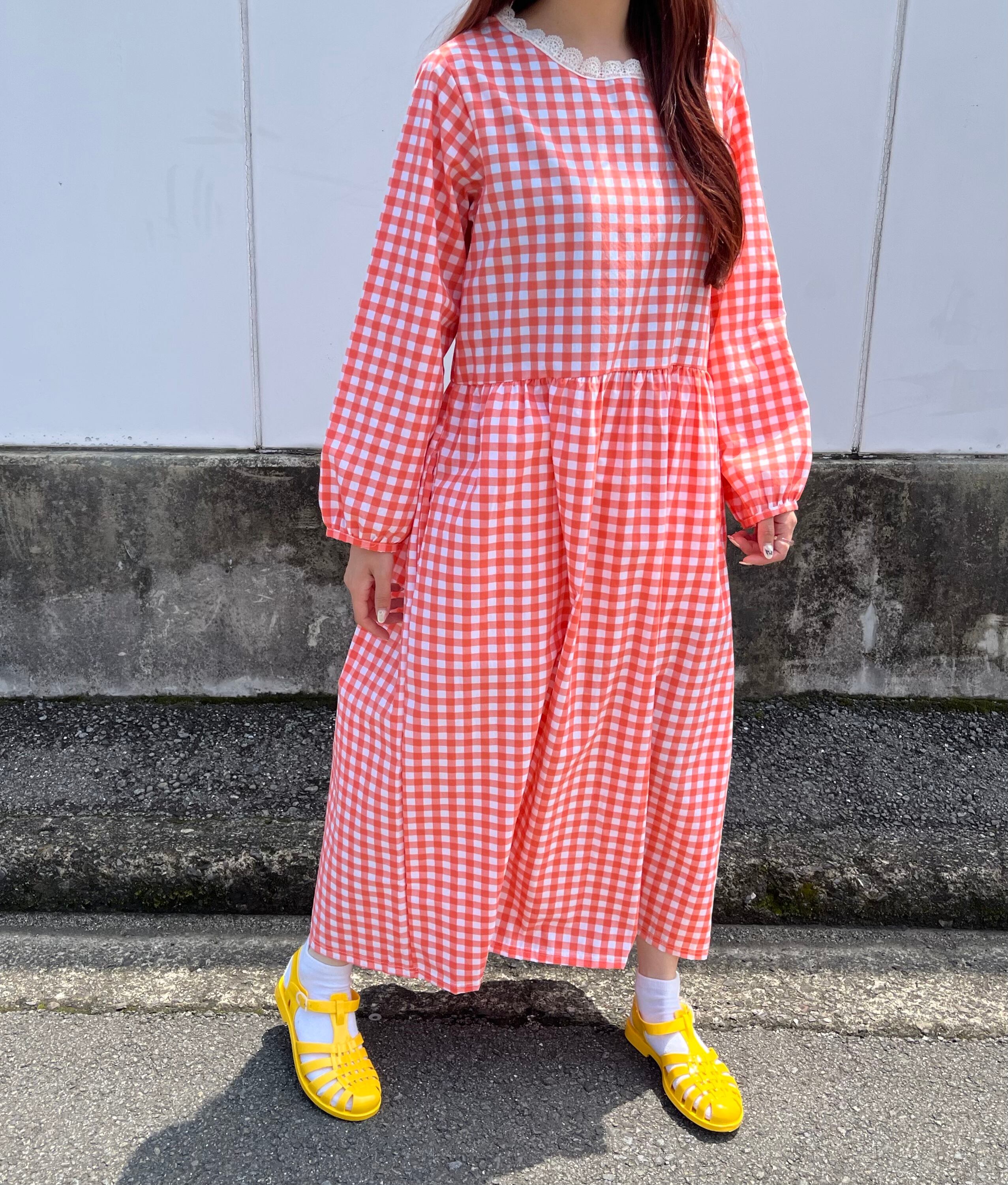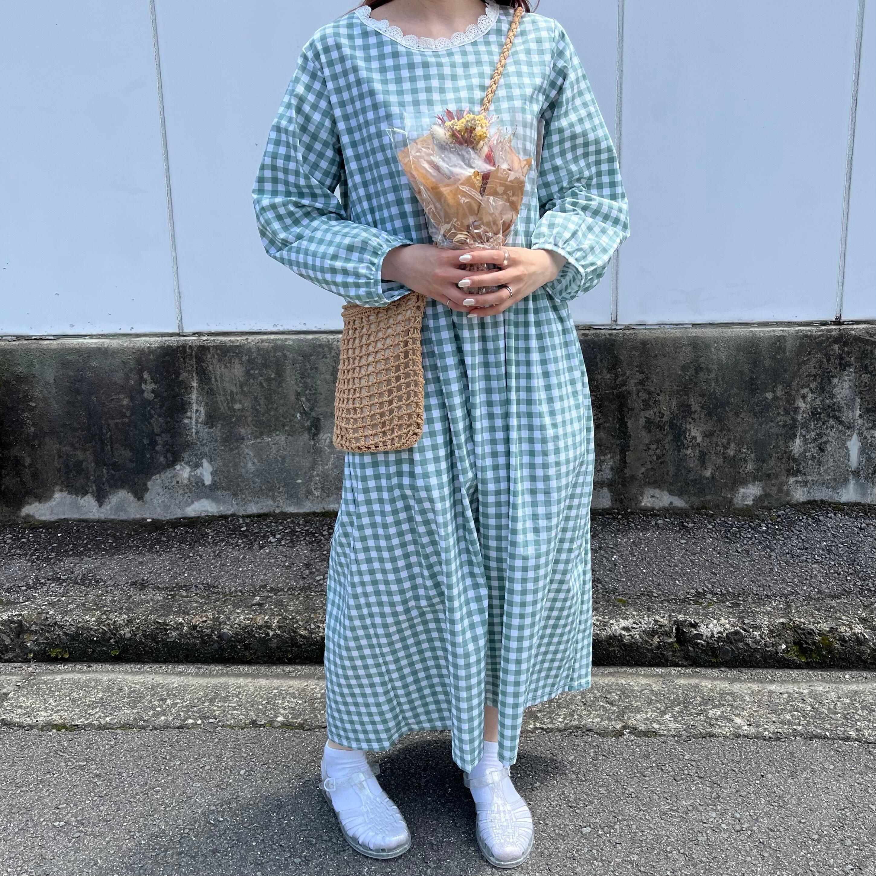 ギンガムチェックワンピース ポケット付き ふんわりワンピース