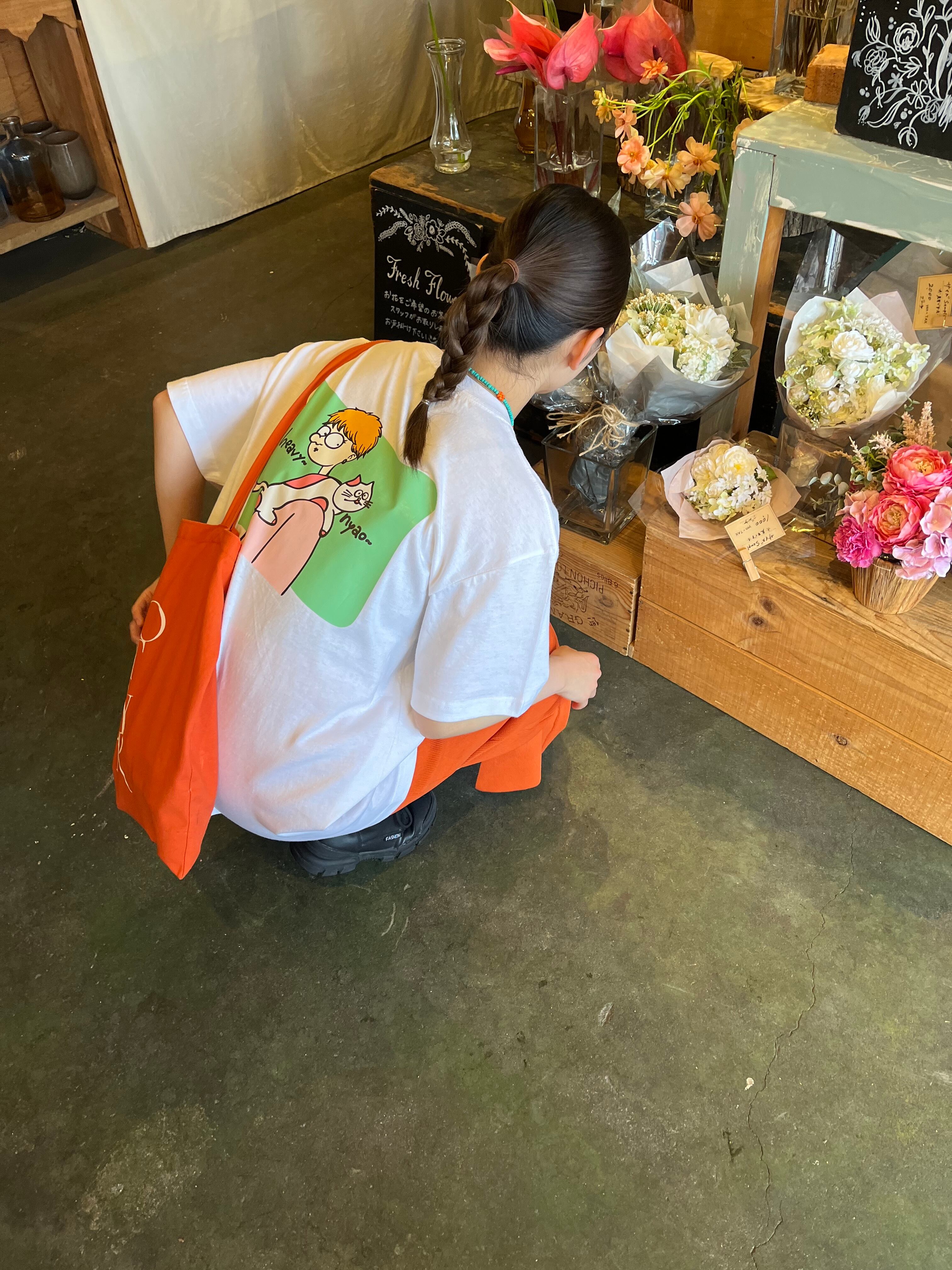 ホワイトTは、カジュアルなオレンジ×グリーン、ボーイッシュなイラスト。シンプルやカジュアルさんが着れるデザインにしました☺︎
